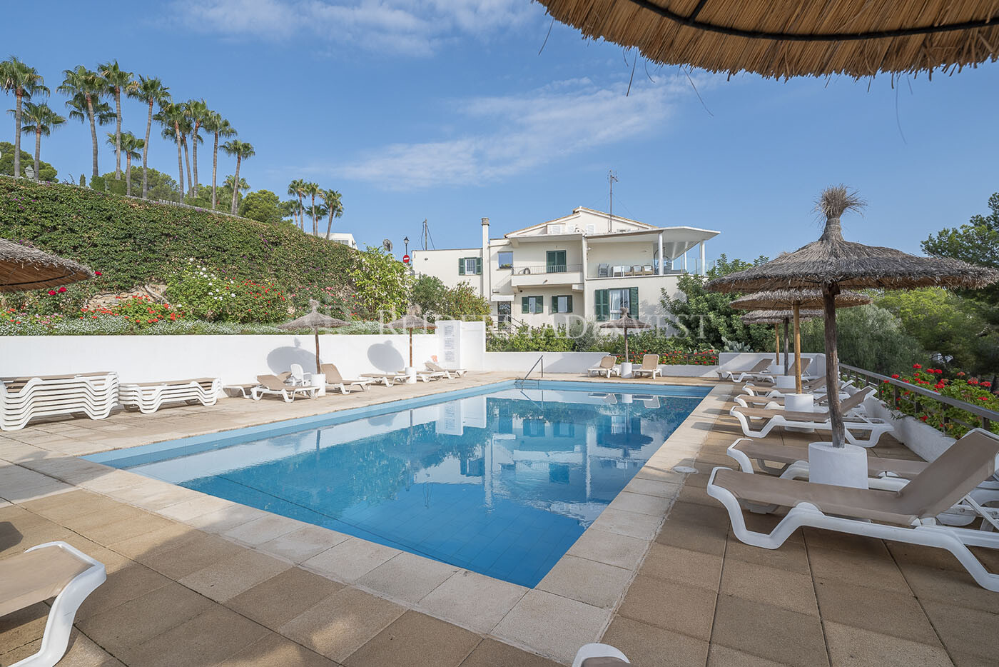 Set within a well-maintained Mediterranean community, residents enjoy peaceful surroundings, lush gardens, and a newly renovated pool area that captures the relaxed elegance of island living.