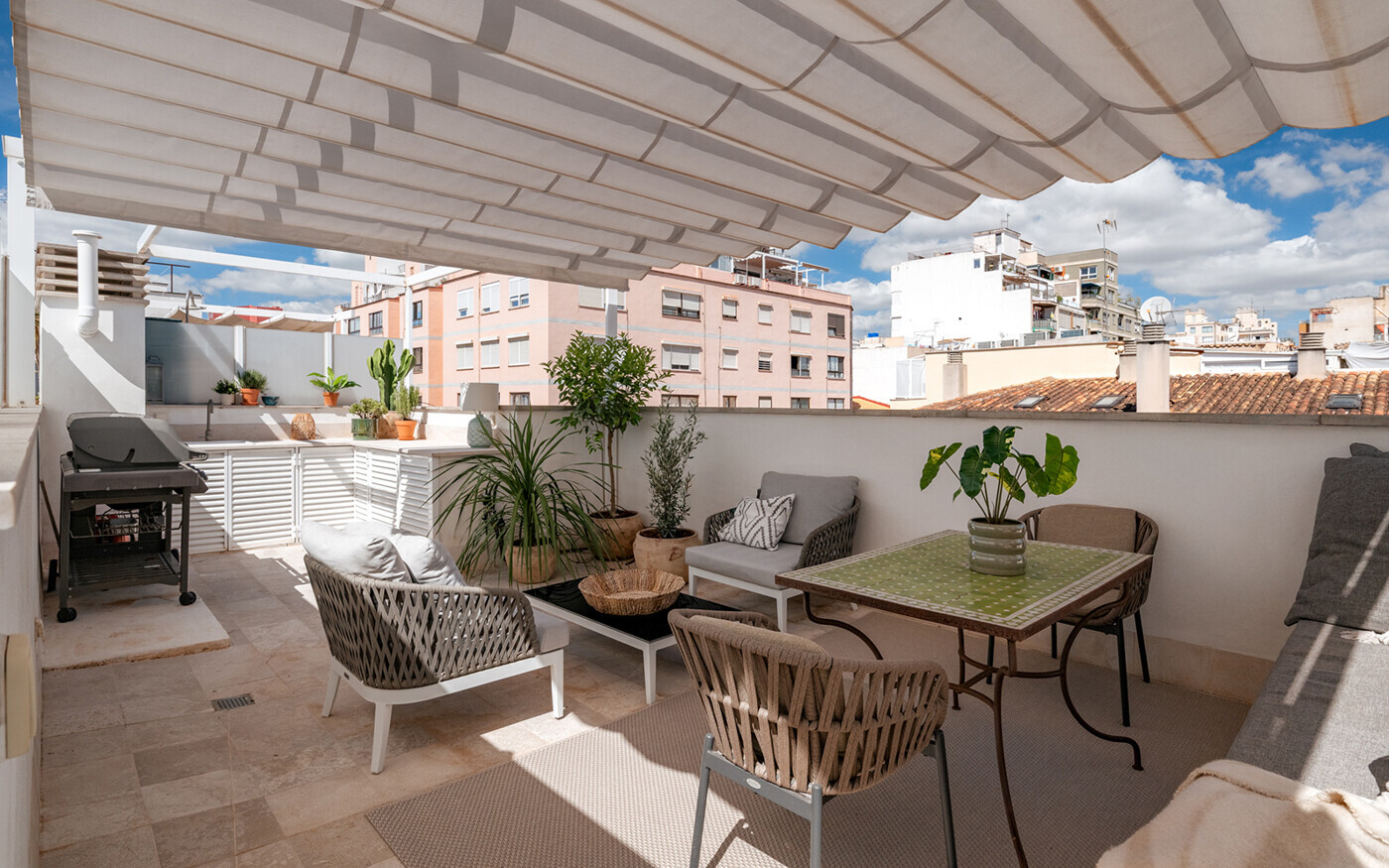 The open-plan kitchen and living area connect seamlessly to a covered terrace, perfect for everyday living and entertaining. In addition, the property has a private rooftop terrace with an outdoor kitchen and stunning views over Palma — an ideal space for dining, relaxing, and enjoying the Mediterranean climate.