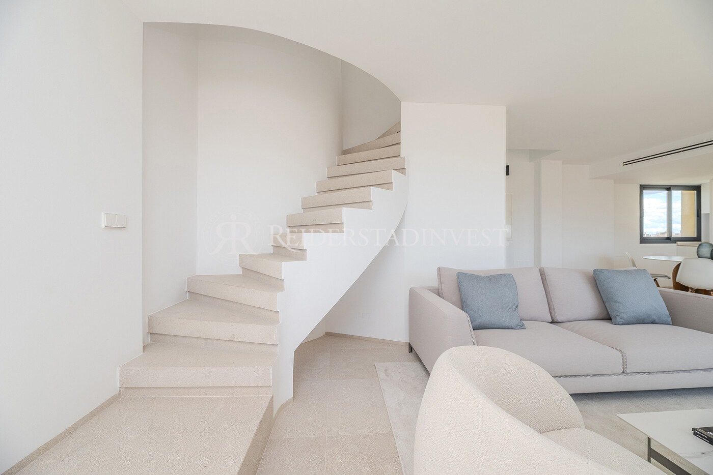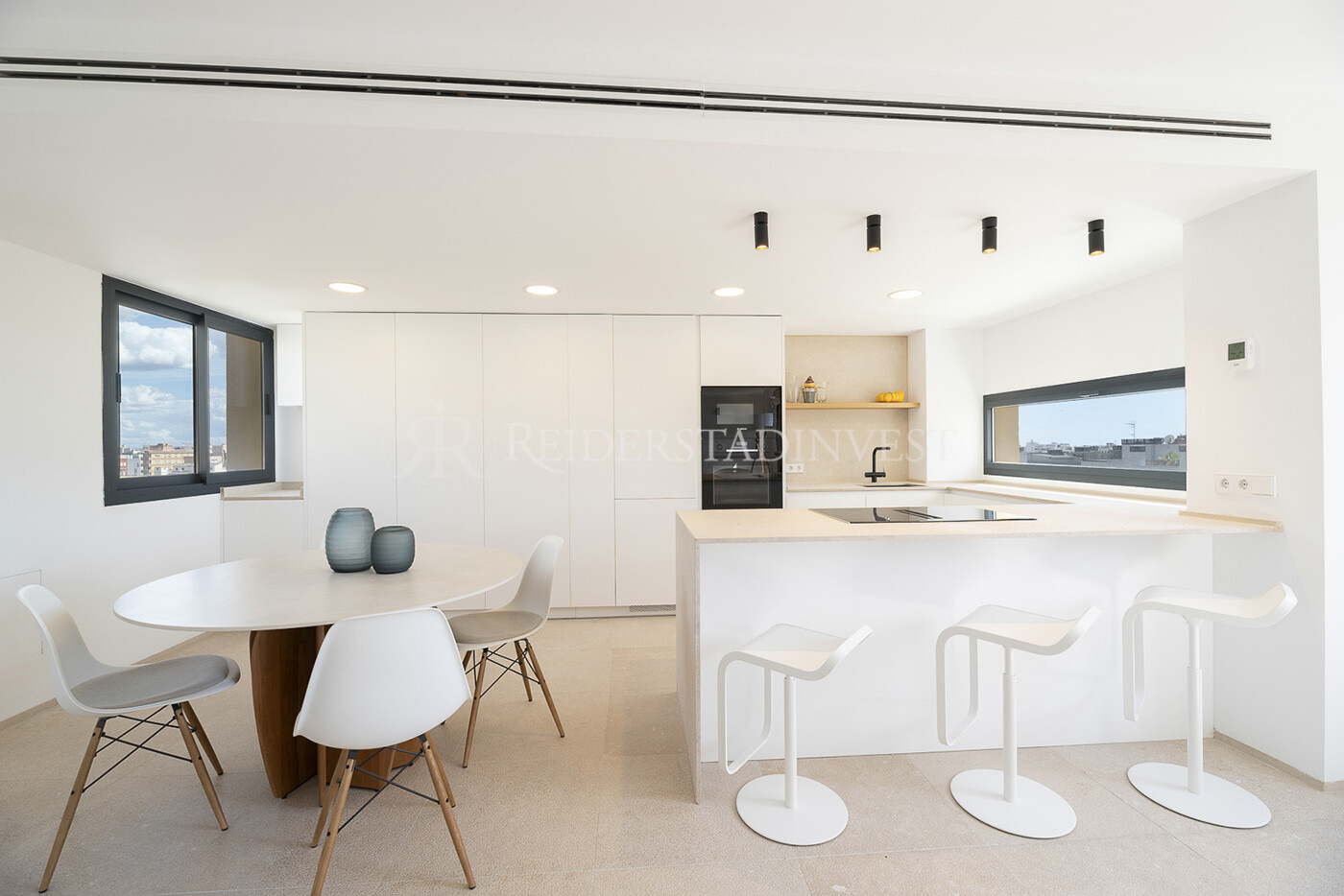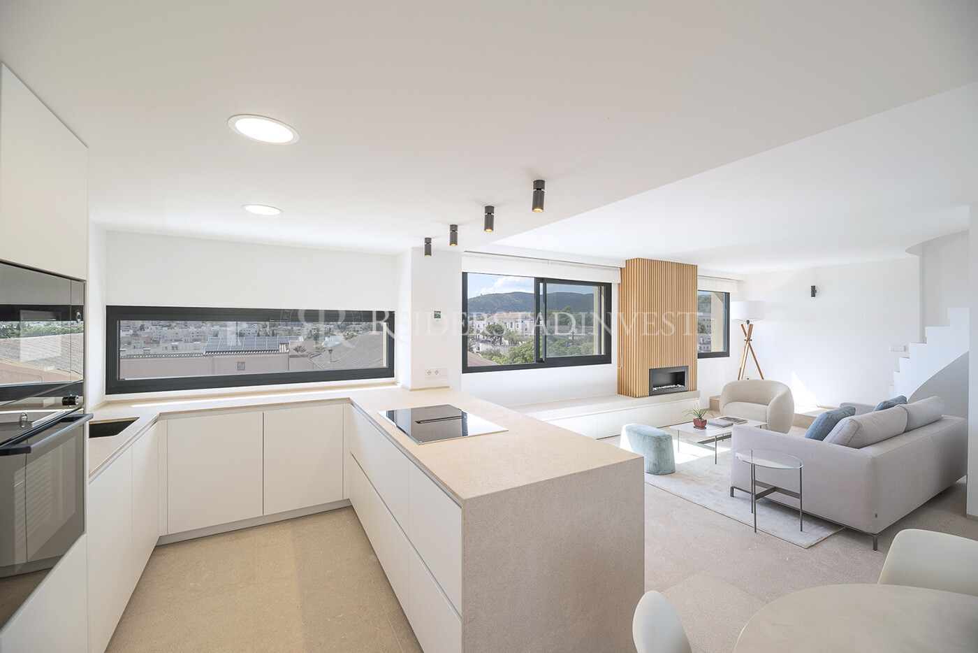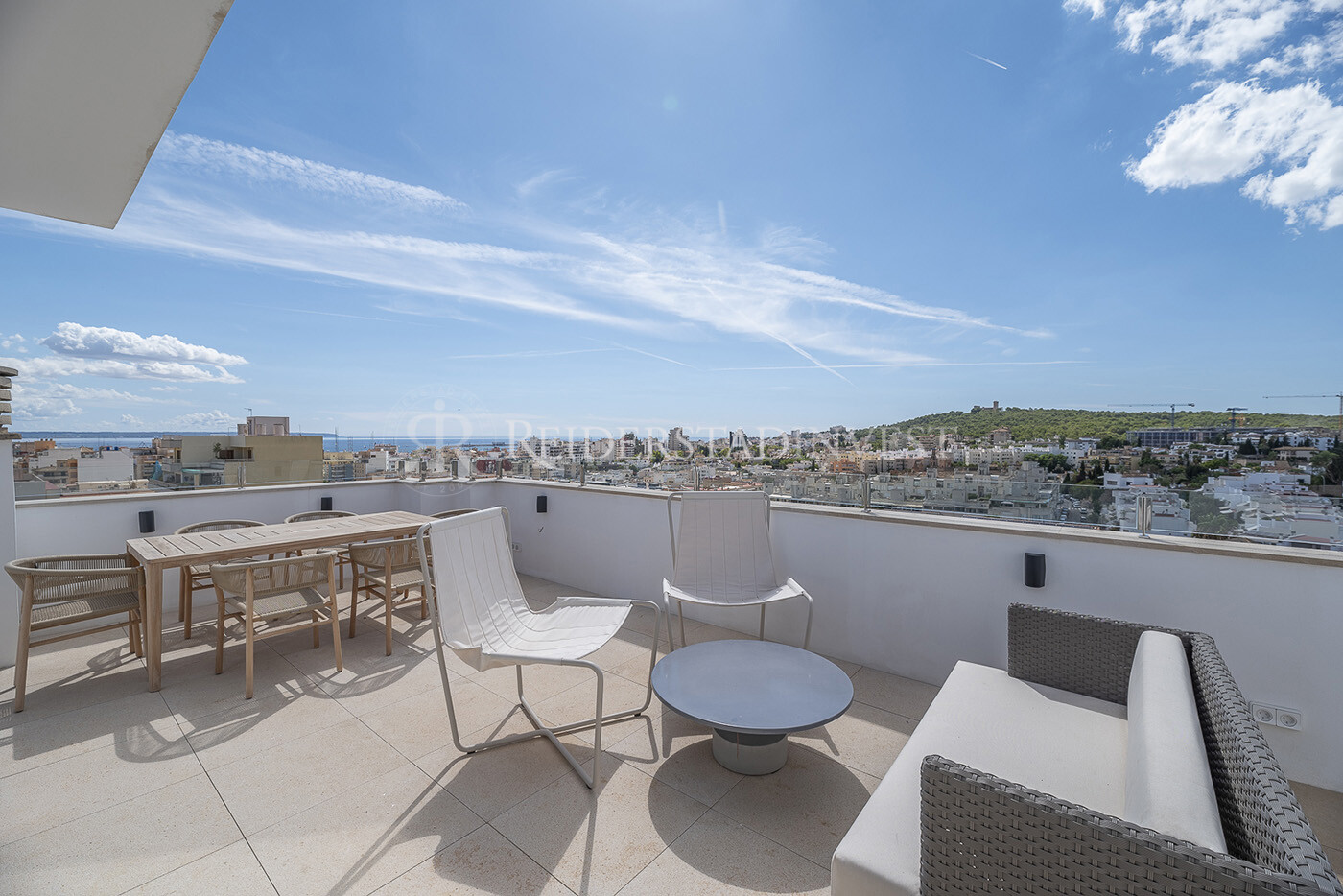 A few steps higher, you’ll reach the highlight of this home — a private roof terrace with impressive 360° views over Palma city and the bay. It’s the perfect place to enjoy the sun, entertain friends, or simply unwind in total privacy.
