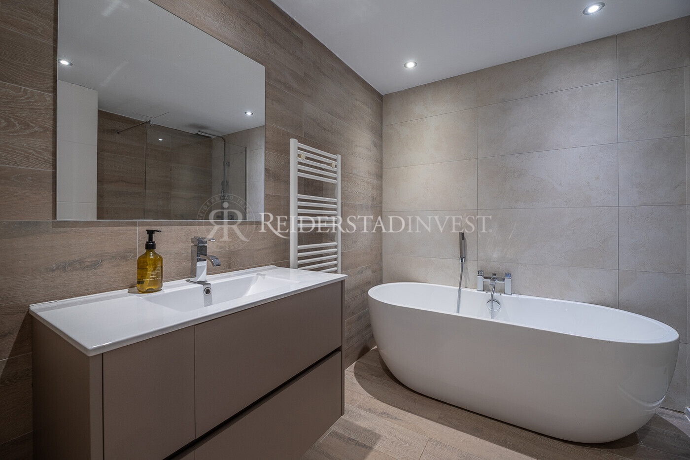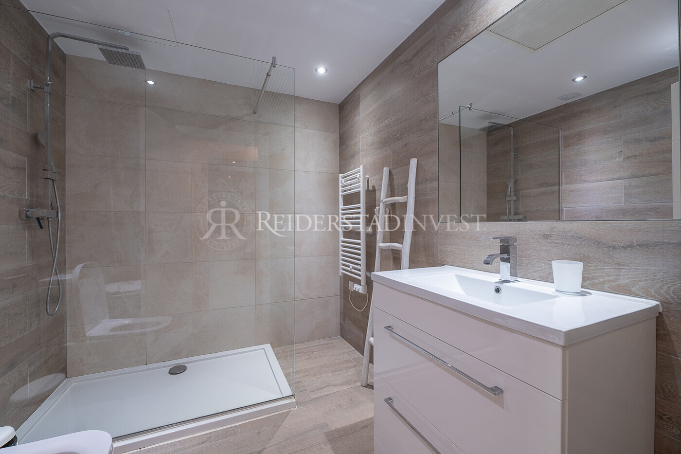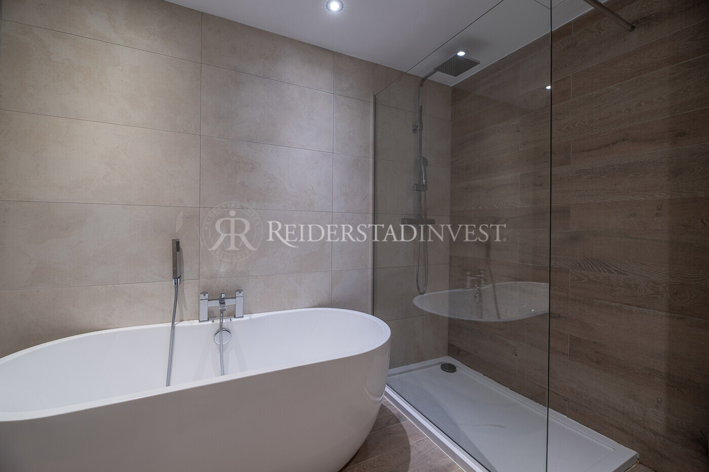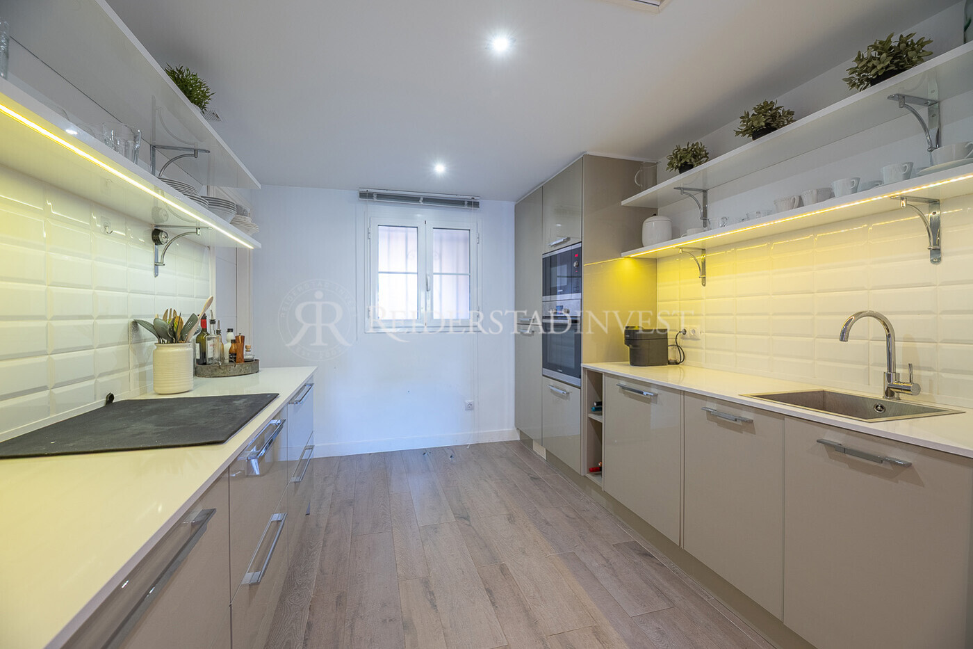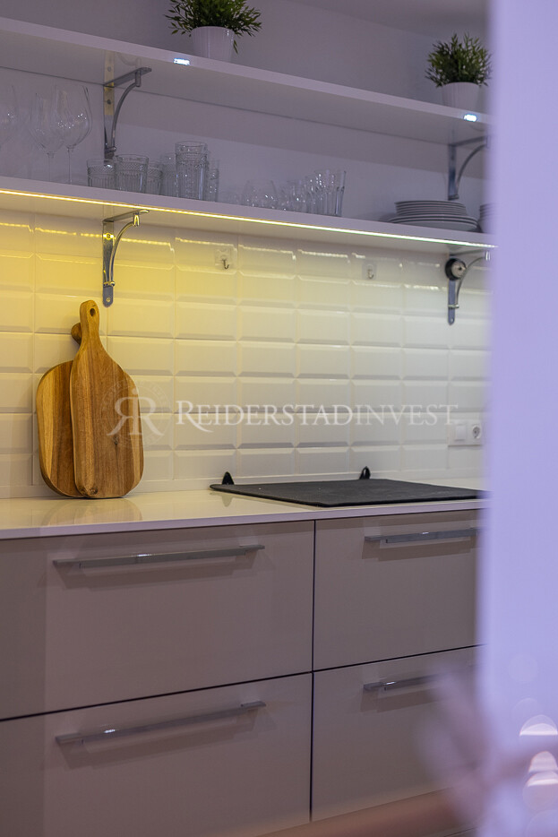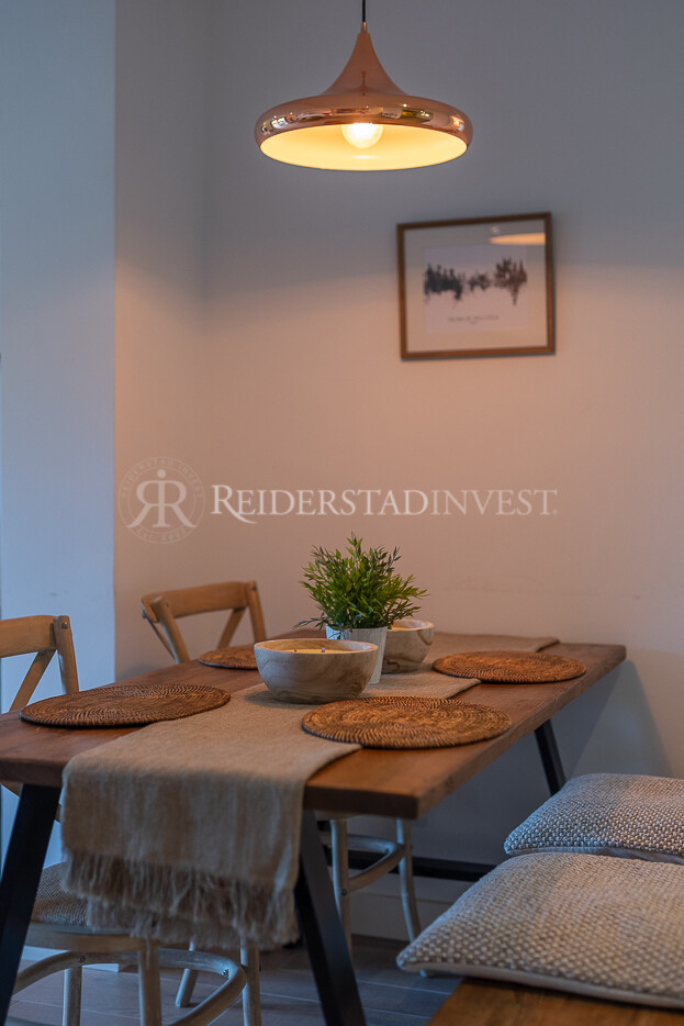 Det fullt utrustade köket kombinerar funktionalitet med stil, vilket gör det perfekt både för vardagsbruk och för att ta emot gäster. Fönster från golv till tak släpper in rikligt med naturligt ljus och skapar en luftig och harmonisk boendemiljö.