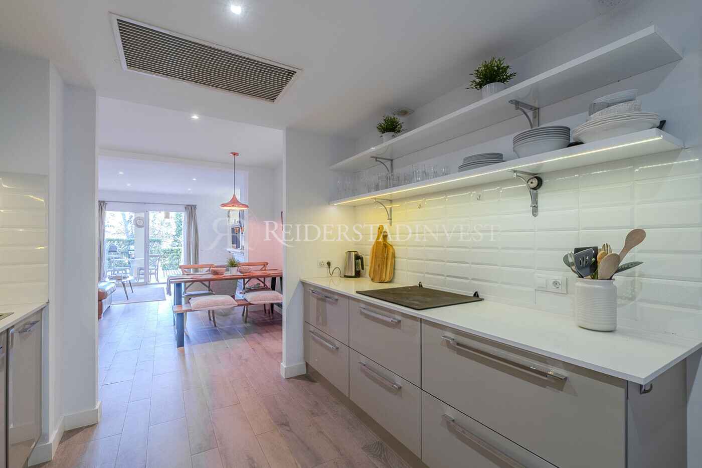 En verklig höjdpunkt är den vackra privata terrassen med direkt tillgång till trädgården, som erbjuder den perfekta platsen för att koppla av, njuta och skapa oförglömliga stunder med vänner och familj. Den välskötta föreningen har dessutom ett trevligt gemensamt poolområde (3 pooler), som ger svalkande njutning under Mallorcas soliga dagar.