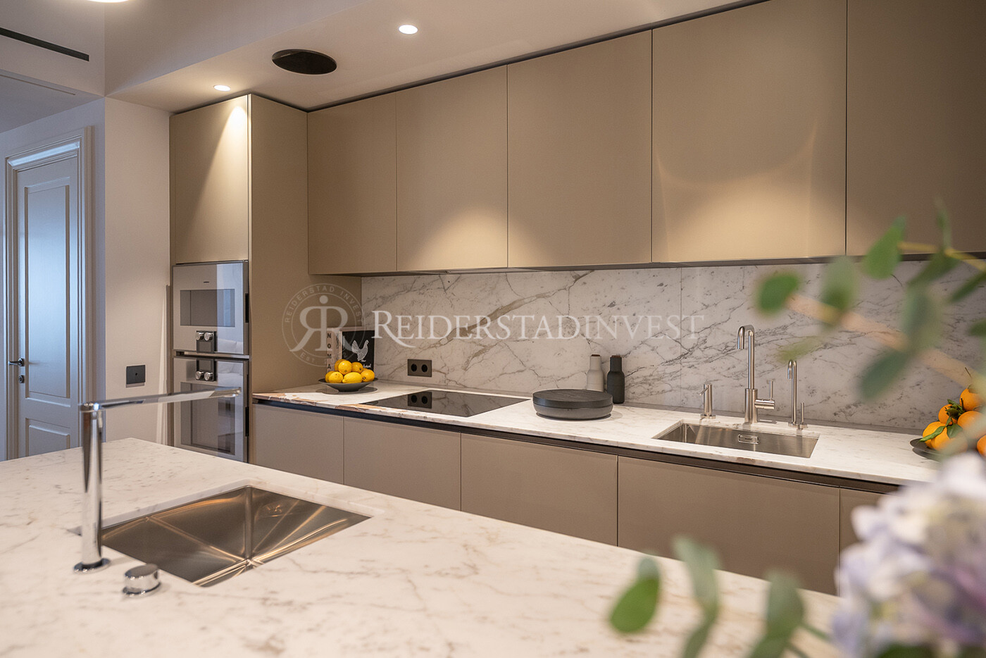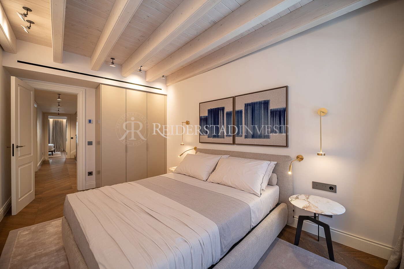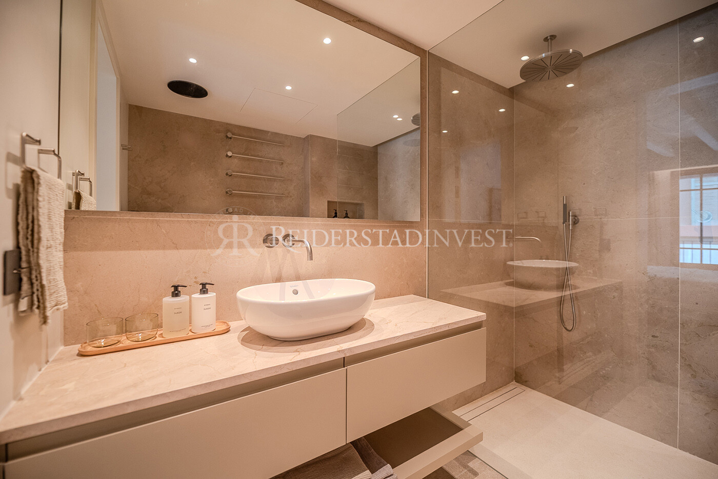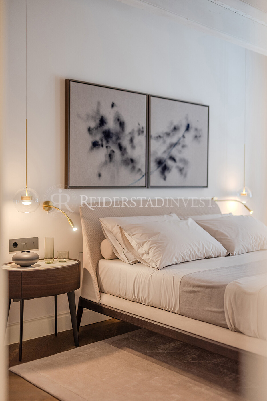 Vi är glada att kunna presentera vårt exklusiva, unika och sofistikerade townhouse med särskilt fokus på arkitektur, design och kvalitet i hjärtat av Gamla stan i Palma. Den nya byggnadens unika identitet har skapats med sina imponerande träbjälkar, höga tak och som kompletterar designen med ädla material som sten, trä, järn och linne, som alla kombineras skapar en elegant och välkomnande atmosfär. En hög komfortnivå är designad för att vara en väsentlig del av byggnadens karaktär med tidlös och modern inredning, med högkvalitativa varumärken som Poliform, Bang & Olufsen, Gaggenau, Roda och Giopato & Coombes. Byggytan på 324 m2 är fördelad över 4 våningar inklusive takterrassen på 42 m2. Fastighetens ingång ligger på gatan Socors, där du kommer in i en rymlig foajé med en vinbar och en passage som leder till privat garage, tvättstuga, privat hiss och trappor till de övre våningarna. Första våningen har 3 sovrum och stora fönster från golv till tak som ger ett underbart naturligt ljus. Andra våningen upptas av det klokt utformade öppna köket, matsalen och vardagsrummet, med franska balkonger i båda riktningarna. Takterrassen är en privat oas, med egen pool, plats för solbäddar och utekök. Inuti detta radhus kommer du att bli förvånad över hur tyst och lugnt det är, med tanke på att du befinner dig mitt i Palmas livliga och pulserande stadskärna.