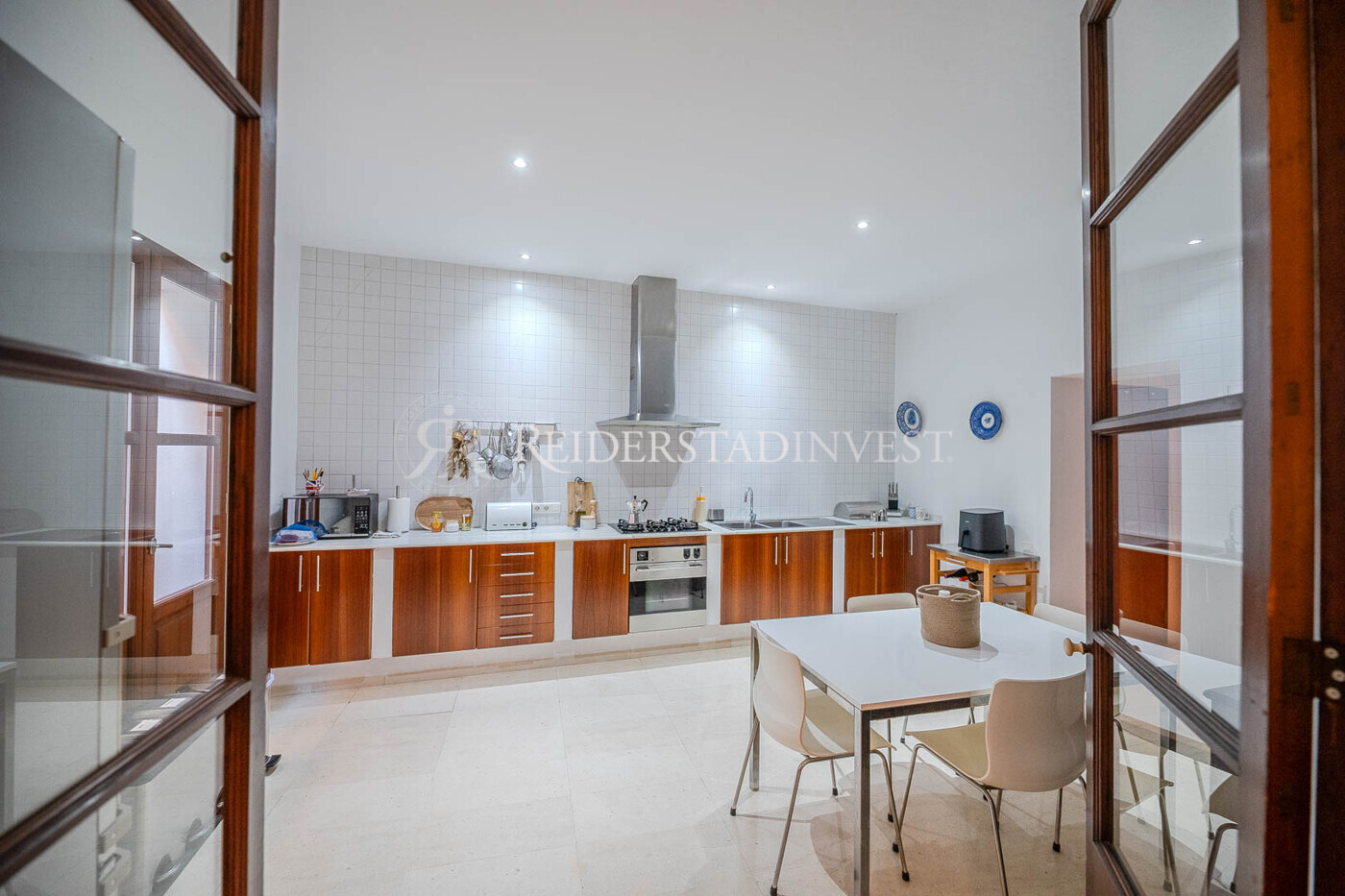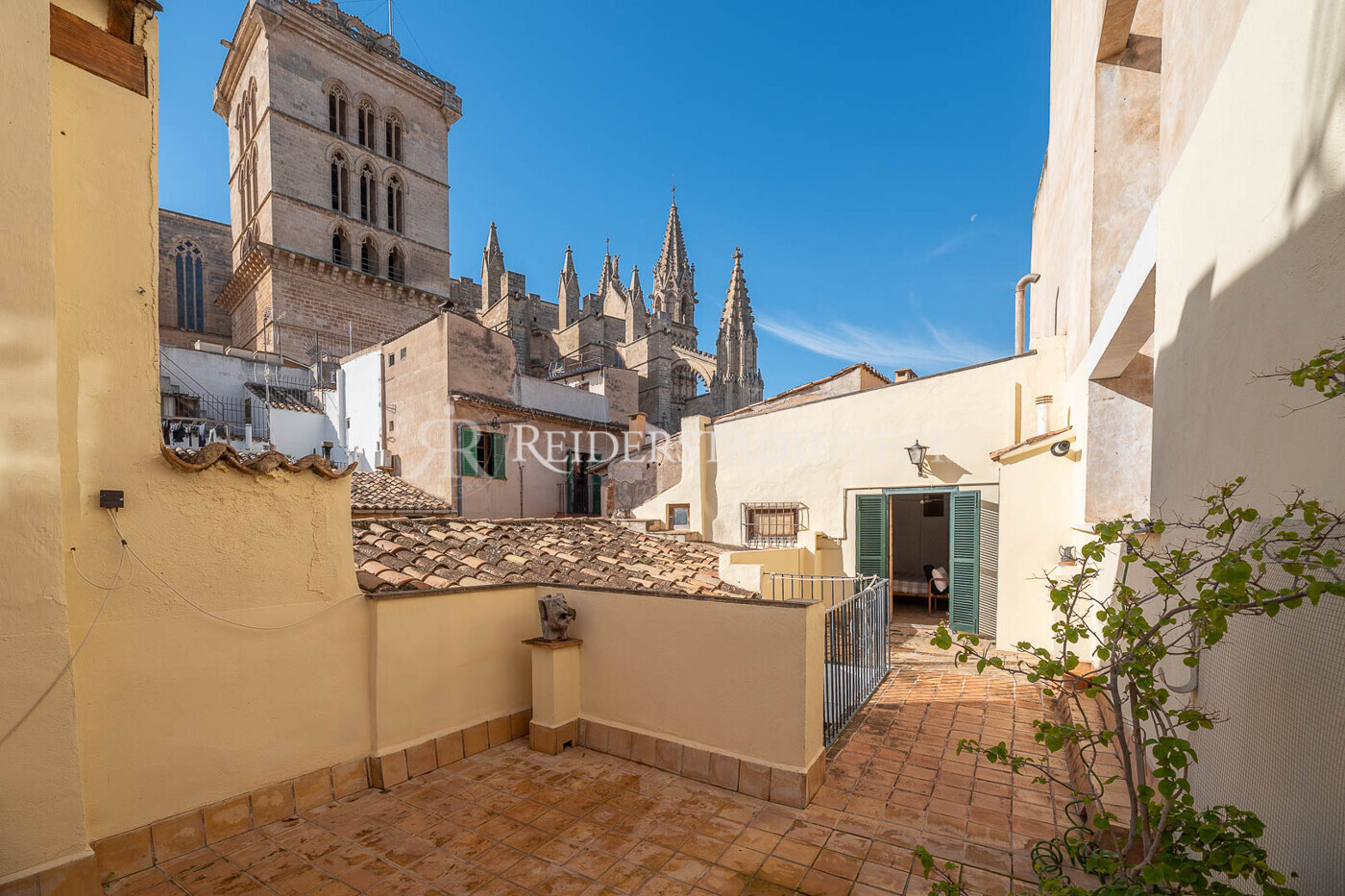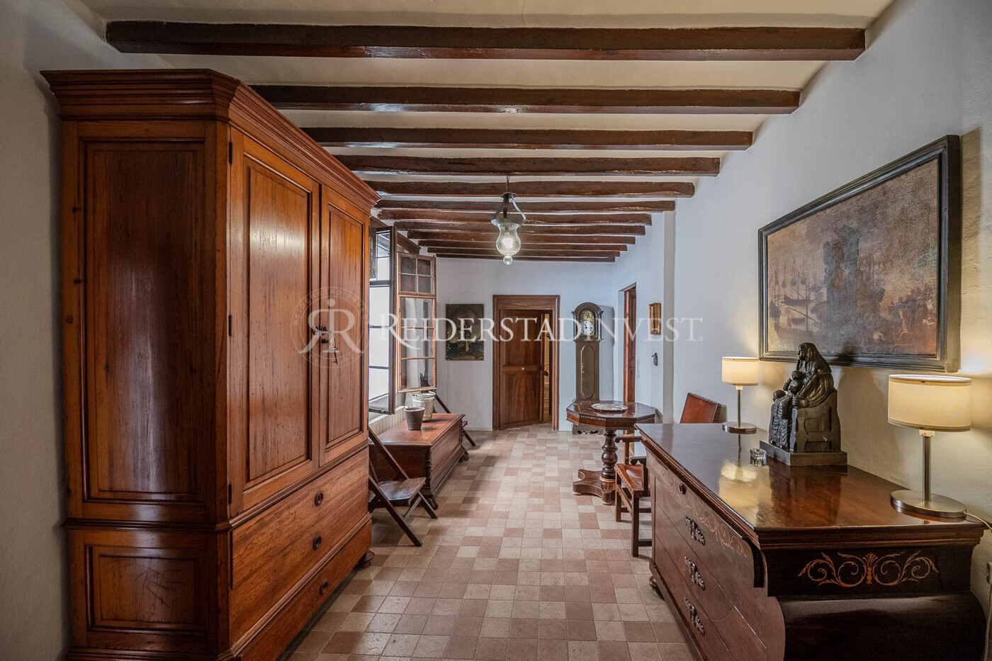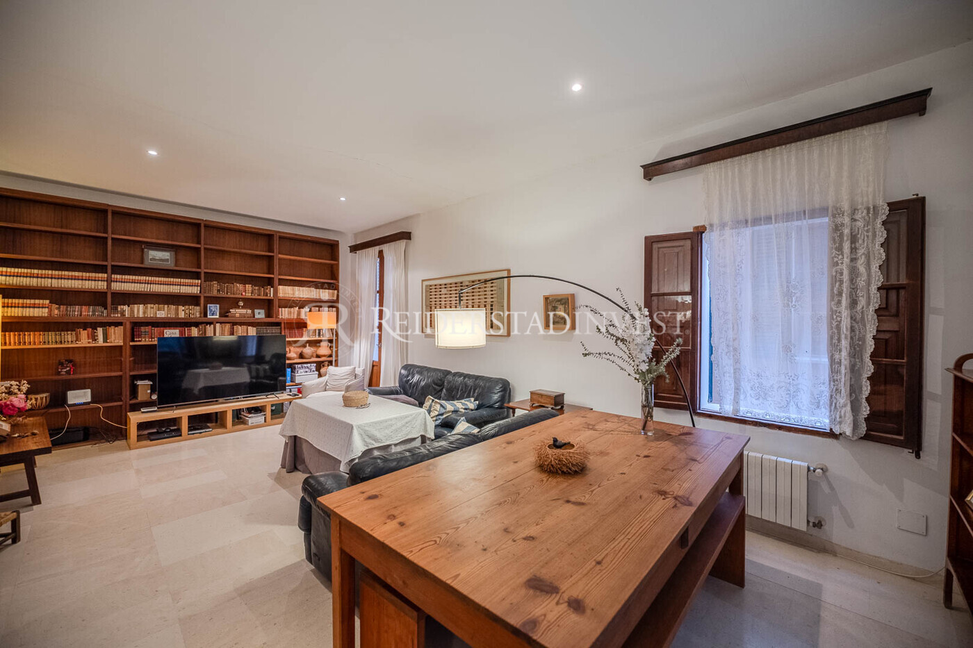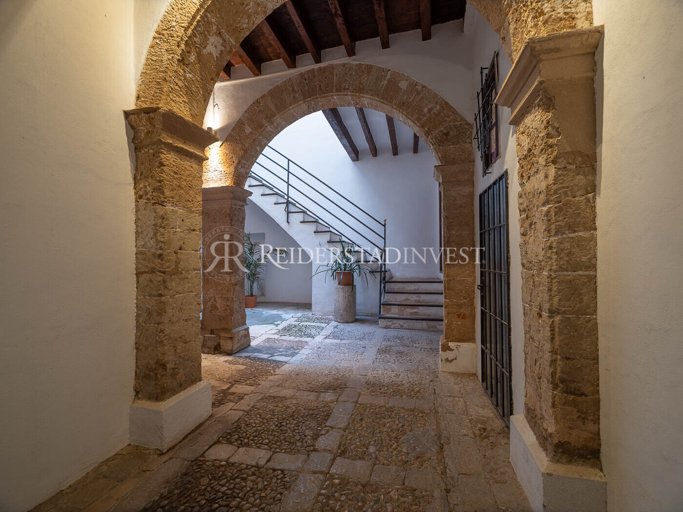 Bostad på andra våningen: Rymlig entré, 2 badrum, 3 sovrum (inklusive master bedroom med klädkammare), stort vardagsrum med öppen spis och balkong-vinterträdgård, bibliotek, rymligt kök med matplats, skafferi, tvättstuga och 3 soliga terrasser med utsikt över katedralen, havet och bergen. Terrakotta-, parkett- och keramikgolv, synliga träbjälkar, centralvärme och luftkonditionering.