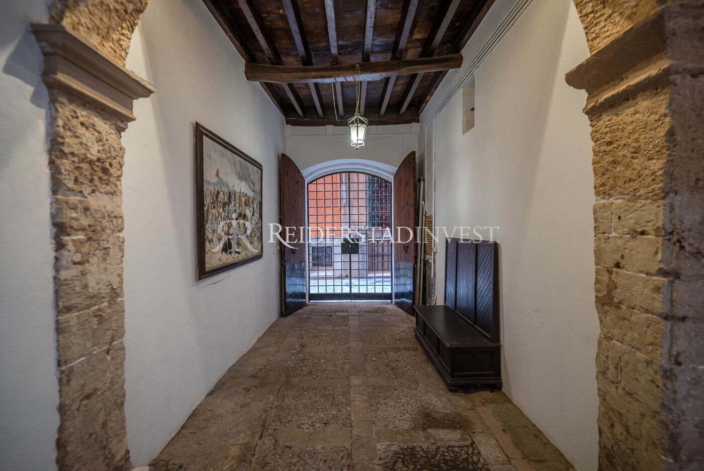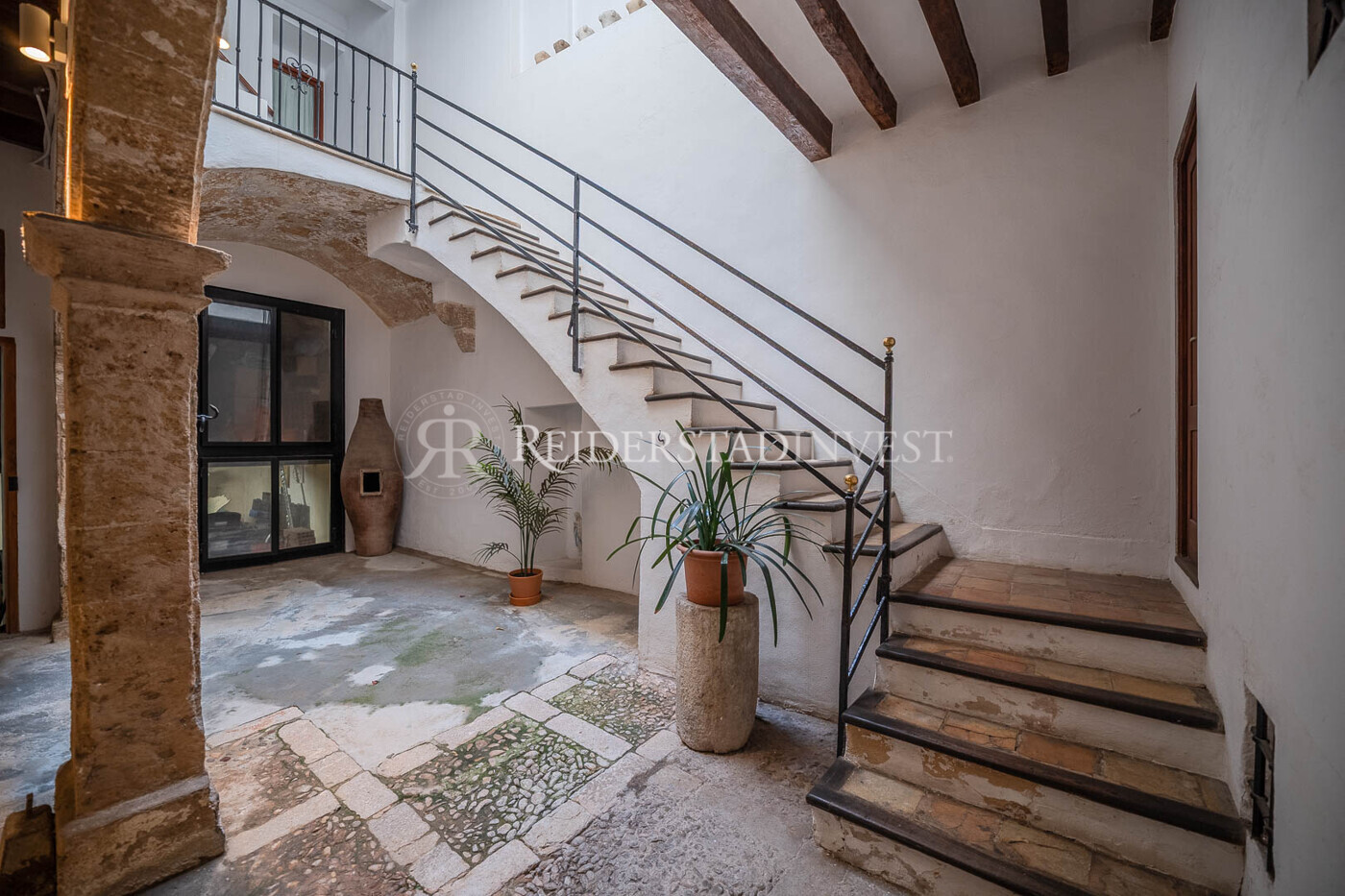 Fastigheten ligger på en tomt på 186 m² och är fördelad på tre våningar – bottenvåning, mellanvåning och två övre våningar – med en total yta på cirka 750 m². Byggnaden är uppförd med högkvalitativa traditionella mallorkanska material som sten- och terrakottagolv och vackert bevarade träbjälkar, och speglar den renaste och mest ädla mallorkanska arkitekturen.